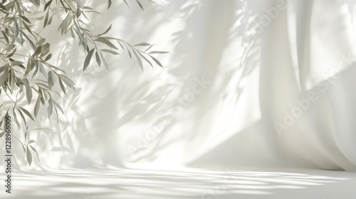 shadow, leaf, plant, tree branch, olive, fabric, background, texture, white, light, sun, nature, green, minimal, design, elegant, clean, simple, scene, studio, photo, image, illustration, aesthetic, peaceful, serene, calm, soft, gentle, bright, summer, spring, beauty, purity, neutral, abstract, pattern, space, template, display, product, presentation
