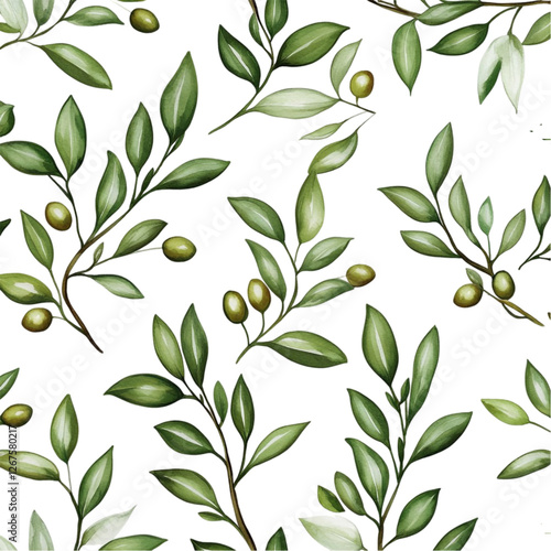 Olive Branch Watercolor Pattern Elegant Green Leaves and Olives Nature Beauty