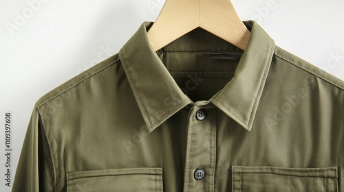 empty, template, olive, green, shirt, hanger, background, clothing, fashion, textile, fabric, style, clothes rack, collar, buttons, casual attire, design, apparel, outfit, pocket, minimalist, wooden, cotton, neat, garment, laundry, simplicity, retail, clean, modern, beige, formal, classic, neutral, muted, tidy, organised, crisp, sleeve, detail, plain, texture, pattern, luxury, fresh, basic, elegance