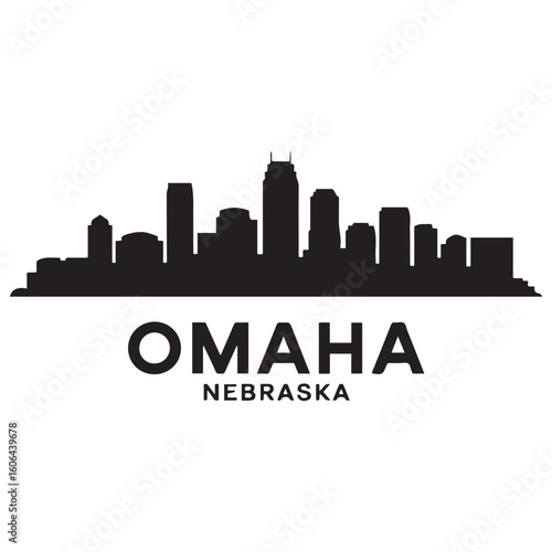 Omaha skyline horizontal banner. Omaha, Nebraska. Vector template for your design. Vector black silhouette. with white background