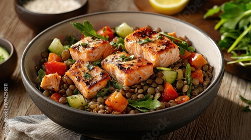 Omega-3 Rich Salmon and Lentil Salad with Lemon Dressing