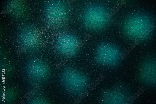 On a dark background, light blue and light green spots of light