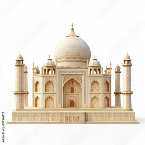 On transparent background, a miniature of the Taj Mahal in Agra, India