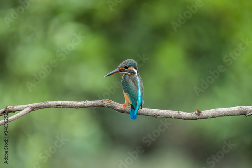 One Beautiful Common Kingfisher (Alcedo atthis) perched and resting