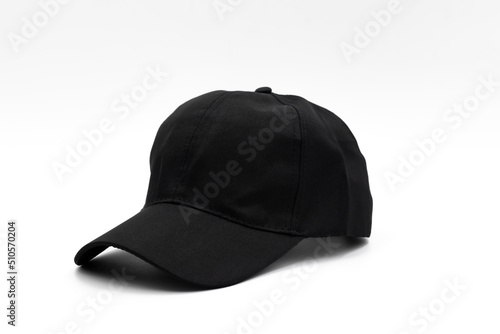 one black plain cap for men isolated on a white background, side view