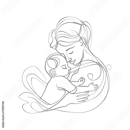 1, continuous, line, drawing, mother, holding, baby, black, colours, only