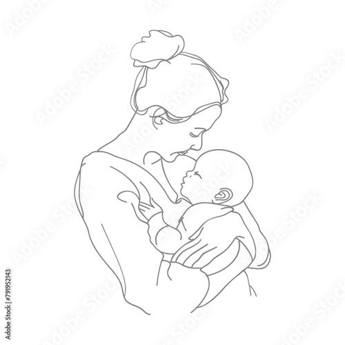 1, continuous, line, drawing, mother, holding, baby, black, colours, only
