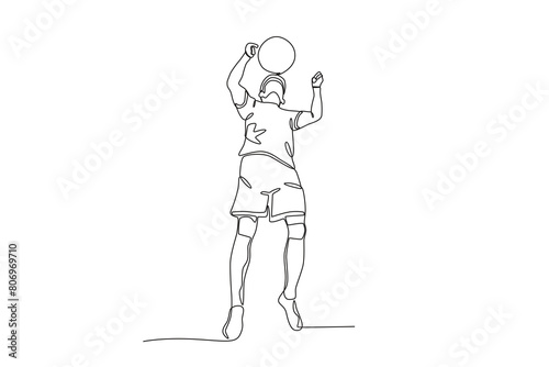 One continuous line drawing of young Football player is heading the ball. Football freestyle sport concept. Single line draw design vector illustration