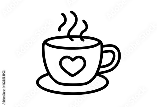One continuous single line of hand drawn with cup of coffee decorated with heart symbol isolated on white background.