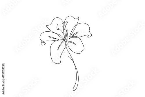 One continuous single-line drawing of bold lily flowers. Flowers silhouette in simple minimal linear style. Elegance plant Doodle outline vector illustration in editable stroke.