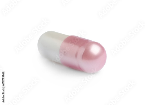 One pill on white background. Medicinal treatment