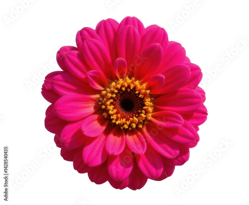 one zinnia on a white background, in a vibrant style, with rich colors, slight shadow, crisp sunlight brilliance, high resolution