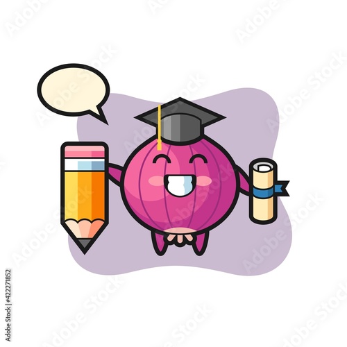 onion illustration cartoon is graduation with a giant pencil