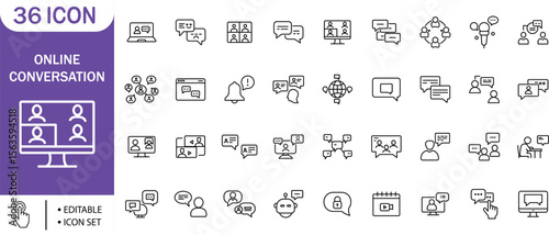 Online Conversation Icon Set, Communication, Chat, Video, Meeting, Talk, Network