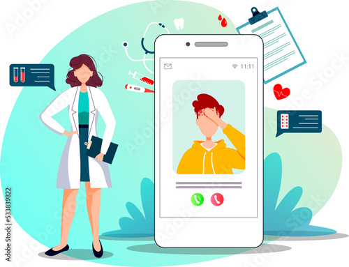 patient, doctor, medicine, illustration, health, health care, medicals, hospital, stethoscope, clinic, medic, signs, icon, work, therapy, man, analysis, diagnosis, online, people, person, cyberspace, technology, mobile, woman, communication, phone, screen, information