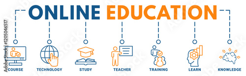 Online Education banner web icon vector illustration concept with icon of course, technology, study, teacher, training, learn, knowledge