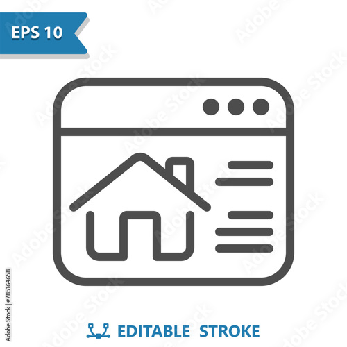 real estate, online, icon, website, web page, website, web page, browser, house, home, advertisement, cyberspace, symbol, vector, outline