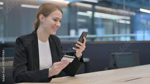 Online Shopping Payment Success on Smartphone by Businesswoman