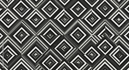 geometric, pattern, design, monochrome, black, white, grey, diamond, square, line, abstract, repeating, texture, optical, illusion, graphic, art, background, seamless, tile, modern, contemporary, style, shape