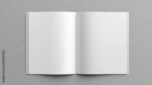 Open and closed blank brochures on grey background, top view. Mock up for design, 16:9 widescreen, 300 dpi, with free space for text