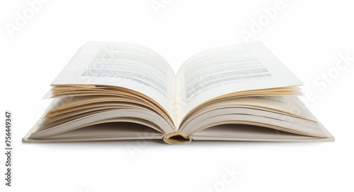 Open Book Isolated on White. A Book Object with Opened Pages and Sheets Standing Alone on a White Background