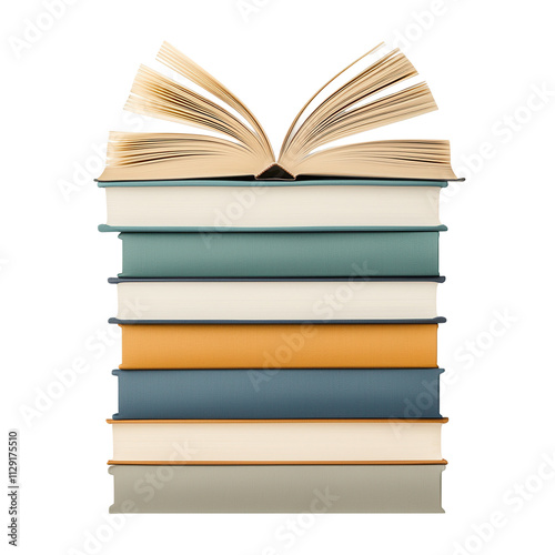 Open book stack of colorful books with transparent background knowledge education learning study environment