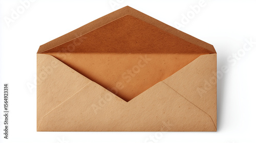 Open Brown Envelope with Blank Paper Inside – Isolated on White Background