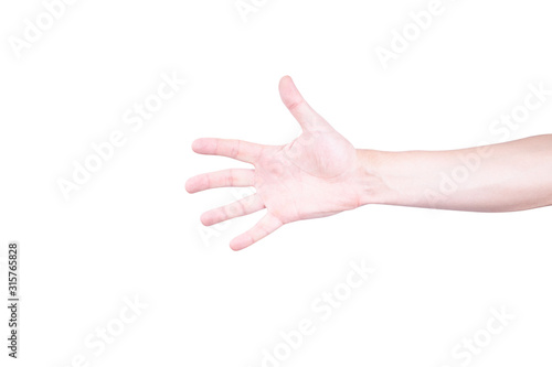 person, finger, gesture, human, open, arm, isolated, palm, hand, background, white, skin, thumb, show, empty, symbol, adult, caucasian, concept, gesticulate, showing, wrist, body, signs, young, give, giving, idea, care, male, assistance, charity, 5, hold, number, poverty, stop, take, up, man, 1, closeup, anatomy, ask, cupped
