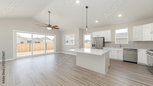 new, modern, space, concept, kitchen, home, view, open, decor, light, clean, dining, natural, area, room, apartment, bright, window, construction, house, neutral, empty, design, contemporary, furniture, interior, living
