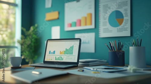 laptop, graph, chart, datum, office, home office, desk, work, workplace, business, finance, analysis, paperwork, document, paper, pen, crayons, hot drink, cup, mug, table, technology, digital, modern, contemporary, indoor, professional, interior, design, home, workspace, screen