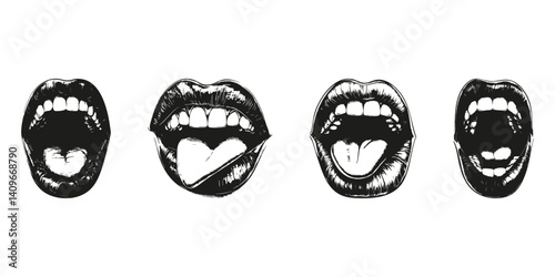 mouth, lip, open, expression, vector, set, silhouette, black, illustration, white, communication, emotion, art, collection, drawing, vignetting, fashion, pop, retro, vintage, concept, creativity, visual, statement, unique, trendy, aesthetic, decoration, print, poster, banner, advertisement, marketing, branding, identity, icon, symbol, gesture, glyphs, solid, bold, pictogram, digital, flat, isolated, graphic, transparent, background