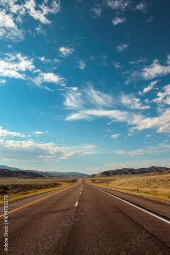 road, sky, cloud, horizon, asphalt, landscape, travel, open, nature, scenic, huge, blue, sunny, summer, highway, journey, freedom, adventure, expansive, endless, serenity, wide, straight, distance, perspective, immensity, driving, view, drive, vacation, trip, exploration, stunning, beautiful, picturesque, american, route, empty, daylight
