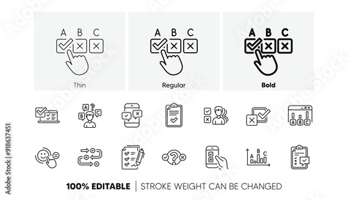 icon, survey, feedback, quiz, report, review, checklist, client, satisfaction, testing, smile, evaluation, result, chart, graph, management, positive, rating, service, support, signs, symbol, flat, line, stroke, vector, illustration, set, app, bold, thin, regular, outline, pack, template, white, web