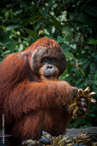Orang Utan alpha male with bananas in Borneo Indonesia