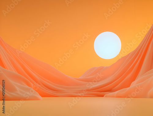 abstract, background, three-dimensional, orange, sunset, landscape, digital artwork, illustration, design, texture, wave, fabric, drape, fold, smooth, curve, minimal, artistic, vibrant, warm, peaceful, serene, calming, soft, elegant, sophisticated, contemporary, modern, style, graphic, image, visual, artwork, rendering, scene, environment, light, shadow, colours, gradient, pastel, hue, tone, aesthetic, atmosphere, mood, ambience