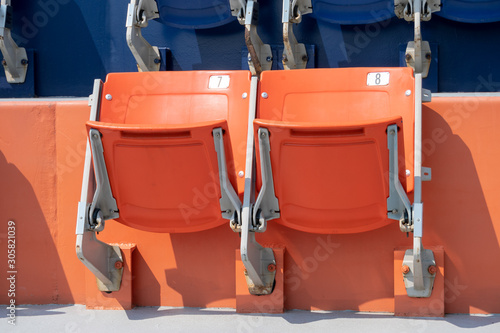 football, baseball, hockey, stadium, comfortable, season, colourful, row, aisle, level, seat, blue, orange, folding