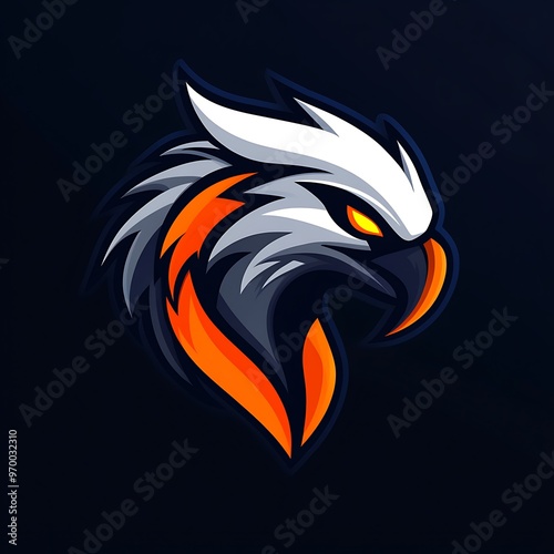 eagle, mascot, logotype, design, head, orange, white, black, dark, abstract, animal, bird, fierce, powerful, vector, illustration, graphic, gaming, sport, team, branding, symbol, icon, art, digital, character, artwork, emblem, crest, badge