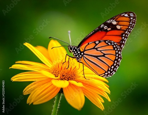 Orange Butterfly on Bright Yellow Flower
