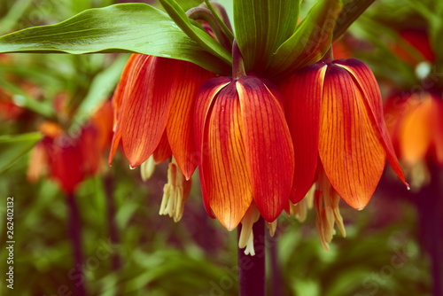 orange flowers blooming Fritillaria in the garden
