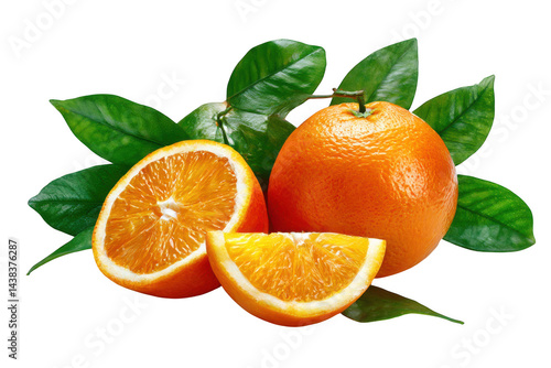 orange, fruit, citrous, leaf, food, vitamin, healthy, slice, fresh, juicy, ripe, sweet, vegetarian, diet, nourishment, tropical, vibrant, nature, image, whole, halved, lush, green, leaf, composition, highlight
