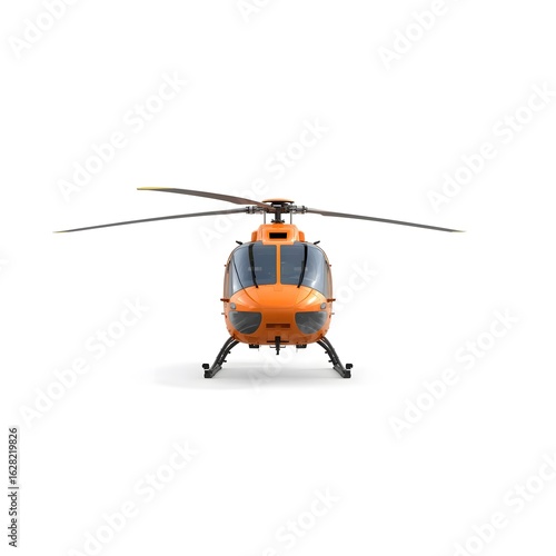 helicopter, orange, rotorcraft, aircraft, aviation, transportation, air, travel, flying, vehicle, machine, technology, engineering, aerospace, rotary, wing, helicopter, chopper, aerial, flight, sky, white, background, isolated, studio, shot, front, view, head, on, profile, modern, sleek, powerful, utility, rescue, emergency, medicals, transport, military, civilian, commercial, private, pilot, rotor, blade, cockpit, fuselage