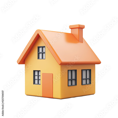 house, home, icon, three-dimensional, orange, render, design, building, property, real estate, architecture, model, illustration, digital, graphic, apartment, bungalow, dwelling, residence, structure, habitat, shelter, estate, housing, family, roof, window, door, chimney, simple, cartoon, cute, sweet, cosy, modern, minimalist, yellow, bright, colours, object, background, white, isolated, element