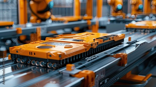 lithium, accumulator, polymer, industry, module, package, plant, power, high voltage, production, rechargeable, renewable, skateboard, technology, vehicle, industrial, automotive, energy, mobile phone, electric, battery, element, automobile, engineering, car, automation, assembly, row, facility, robotic, robot, autonomous, arm, factory, process, conveyer, pack, orange, manufacturing, machinery, line, intelligent, equipment