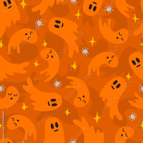 Orange Monochrome Ghost Halloween Vector Seamless Pattern