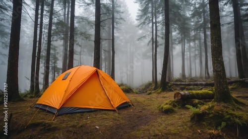 orange, tent, camping, foggy, forest, background, camp, nature, summer, outdoors, adventure, tree, travel, tour tourism, campground, hiking, landscape, grass, green, leisure, tent, equipment, hike, mountain, sky, park, holiday