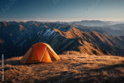 camping, tent, mountain, landscape, adventure, outdoors, nature, hiking, peak, travel, sky, orange, grass, hill, wilderness, tour tourism, scenery, vacation, summit, destination, view, trekking, exploration, backpacking, range, alps, ridge, remote, serenity, calmness, escape, journey, alpine, highland, sunlight, vale, vista, pastoral, panorama, distance, cloud, morning, gold, dry, meadow, slope, height, climb, up high