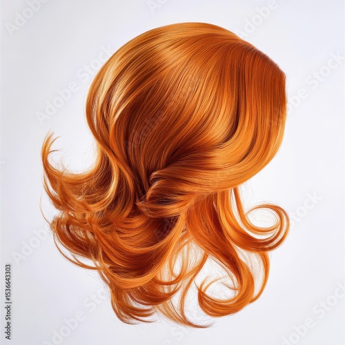 orange wig floating with no one inside, you can see the interior of the wig, white background