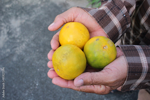 Oranges fruits on hand