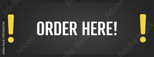 Order Here. A blackboard with white text. Illustration with grunge text style.