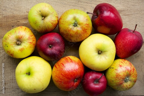wooden, red, raw, organic, nature, natural, green, fruit, freshness, diversity, collection, autumn, apple